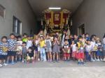 巨大な「布団」に驚き 堺市の百舌鳥八幡宮秋祭り控え子供たちが「ふとん太鼓」堪能